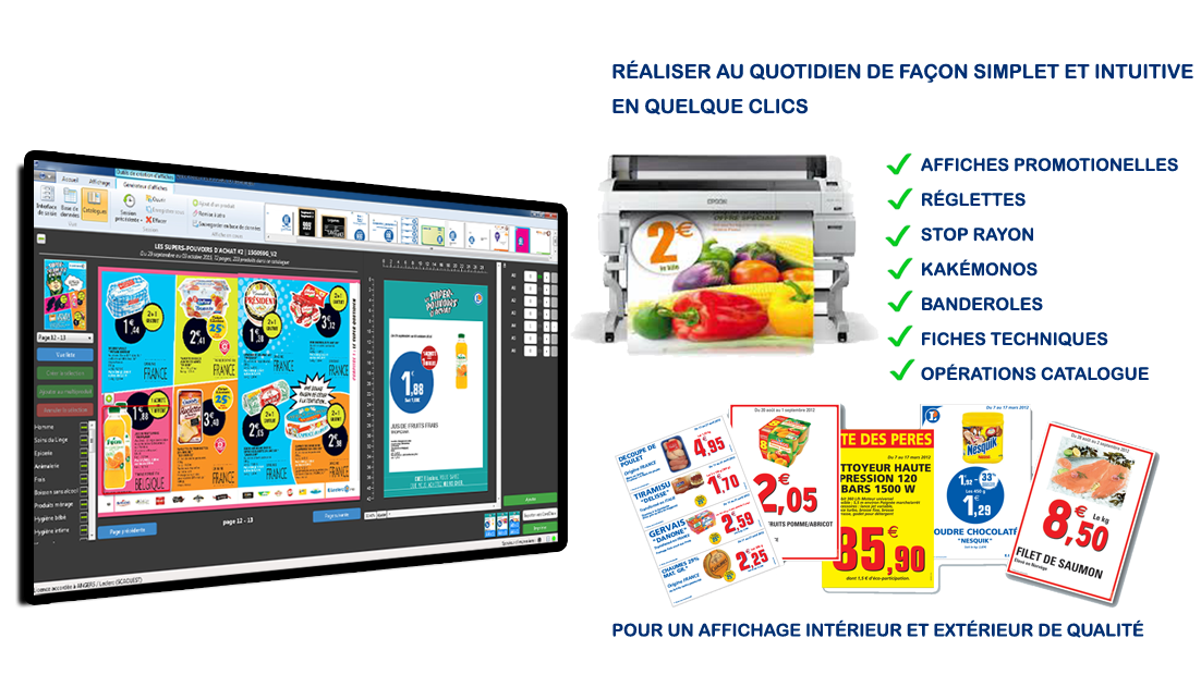 QuickPoster est une solution multi utilisateurs permettant d'automatiser l'impression et la déclinaison des affiches promotionelles du point de vente.